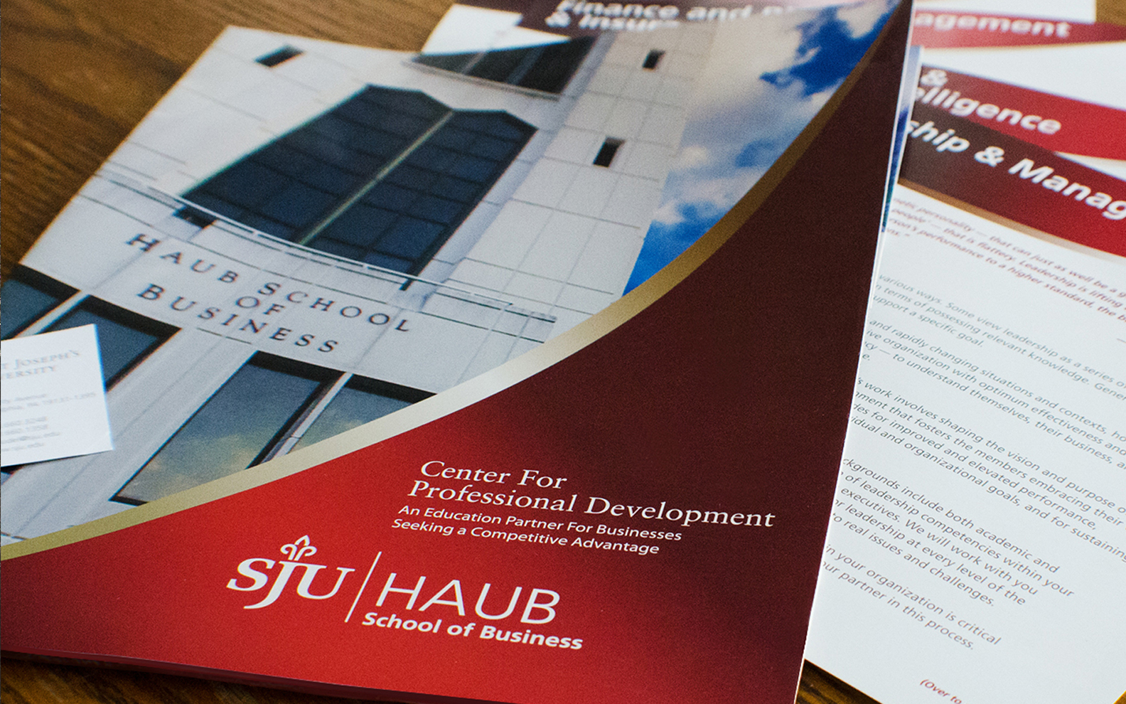 With over 150 years of tradition, the Haub School of Business is a powerhouse with its eyes set firmly on the future. The challenge was to create an identity that highlights the school's forward-thinking vision while honoring the university's rich legacy. We achieved this by featuring the university's golden shield with a modern, sweeping design. This visual element acts as a spotlight on the SJU Haub School of Business name, connecting the strength of its past to the promise of a successful future. The design speaks to an investment in excellence, inviting prospective students to discover how a brand with a history of success can elevate their own.